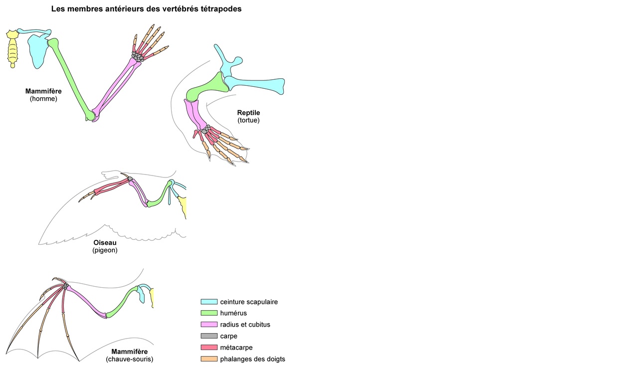 Le squelette du membre antérieur de tous les Vertébrés a une organisation en trois parties :