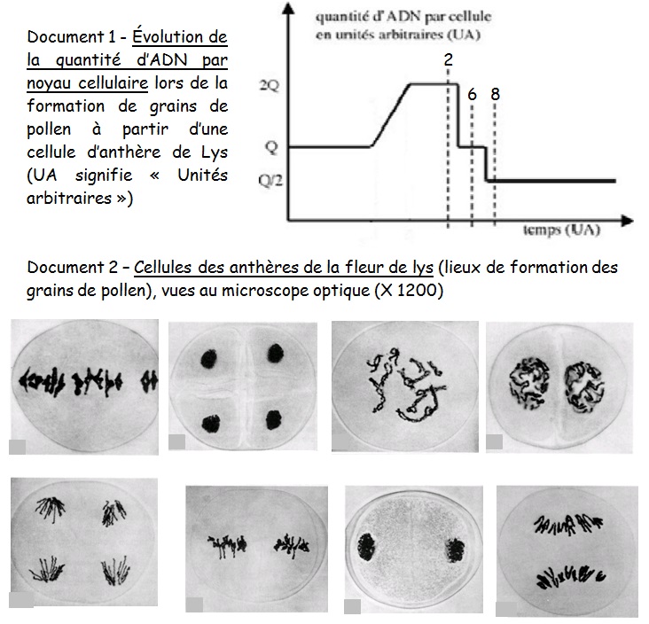 Les différents clichés du document 2 représentent huit étapes de la formation des grains de pollen dans les anthères de lys.